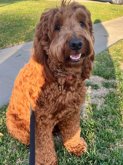 Beau is a gorgeous and incredibly sweet Multigenerational Goldendoodle! He has a soft, silky red wavy/straight coat which has remained this dark and he is 4 years old!