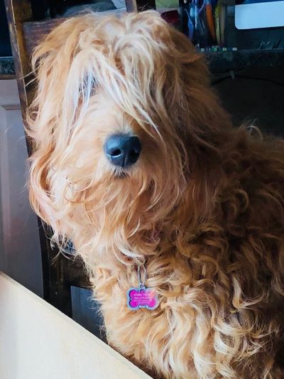 Aussie is our sweet pup we kept from Indie's first litter! She is an F1B beauty! Aussie is a BIG lover! She inherited many of Indies traits and is incredibly sweet and very loyal. She gets so excited when we come home! Nothing can ever replace that feeling of unconditional love she brings! She is very smart and quick to be trained. She loves learning new things and is very eager to please. She loves playing with her squeaky ball and running around the backyard with Indie chasing their friend, Squirrel.